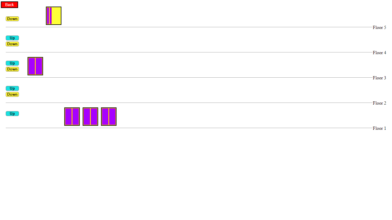 - An interactive UI is generated, where we have visual depictons of lifts and buttons on floors