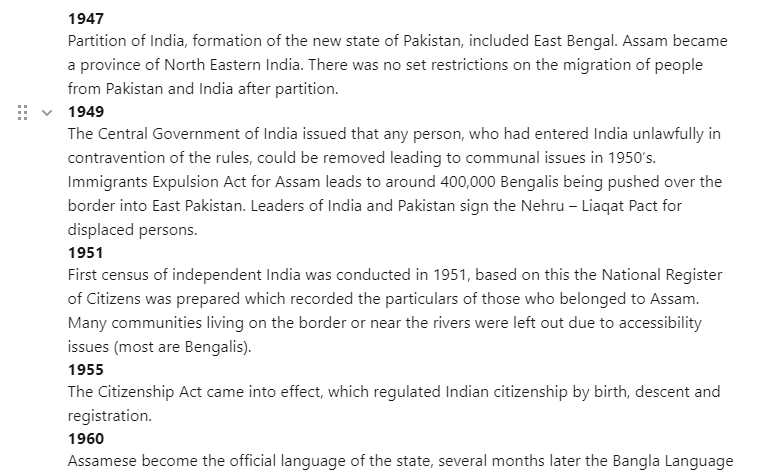 Partition of India, formation of the new state of Pakistan, included East Bengal. Assam became a province of North Eastern India. There was no set restrictions on the migration of people from Pakistan and India after partition.