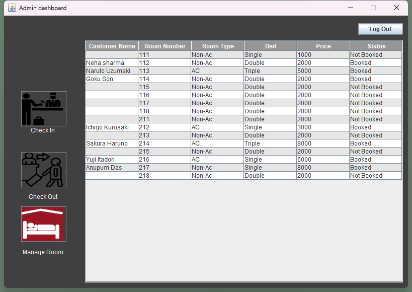 The classes and interfaces in this project serve various purposes, including managing payments (πΈ BkashPayment, πΈ NagadPayment, πΈ ConfirmPayment), handling check-in and check-out processes (ποΈ CheckIn, ποΈ CheckOut, ποΈ CheckOutRoomSearch, ποΈ ClearCheckOut, ποΈ CustomerDataEntry, ποΈ WriteCheckInInfo), providing user interfaces (π₯οΈ DashBoard, βοΈ Edit, π ForgetPass, π ForgetPass2, π ForgetPass3, π Login, π Main, ποΈ ManageRoom, π° Payment, π€ Profile, π ShowRoom, βοΈ Signup, ποΈ UCheckIn, ποΈ UCheckOut, π₯οΈ UDashBoard), and more.