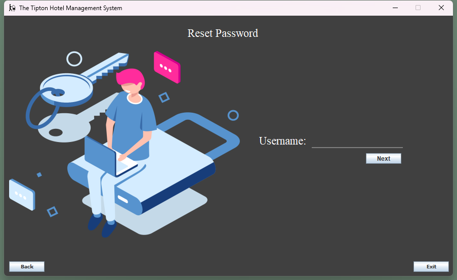 Once the application is running, you can perform various tasks such as managing hotel bookings, checking room availability, and more. Please refer to the application's user documentation for detailed instructions on how to use the system.