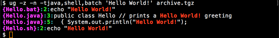 We were looking for an efficient grep tool to quickly dig through hundreds of zip- and tar-archived project repos with thousands of source code files, documentation files, images, and binary files. We wanted to do this without having to expand archives, to save time and storage resources. With ugrep we have the ability to specifically search source code (with option -t) while ignoring everything else in these huge zip- and tar-archives. Even better, ugrep can ignore matches in strings and comments in source code using "negative patterns", e.g. with pre-defined patterns ugrep -f c++/zap_strings -f c++/zap_comments .... To keep ugrep clean BSD-3 source code unencumbered by GPL or LGPL terms and conditions, I wrote my own tar, zip, pax and cpio unarchivers from scratch in C++ that call external decompression libraries linked with ugrep.