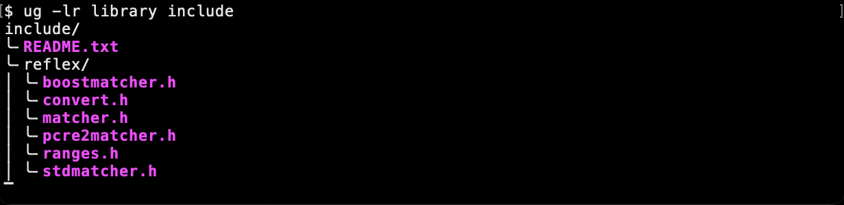 Option --pretty enhances the output to the terminal. You can specify pretty in a .ugrep configuration file so that ug -l lists directory trees instead of the traditional flat grep list: