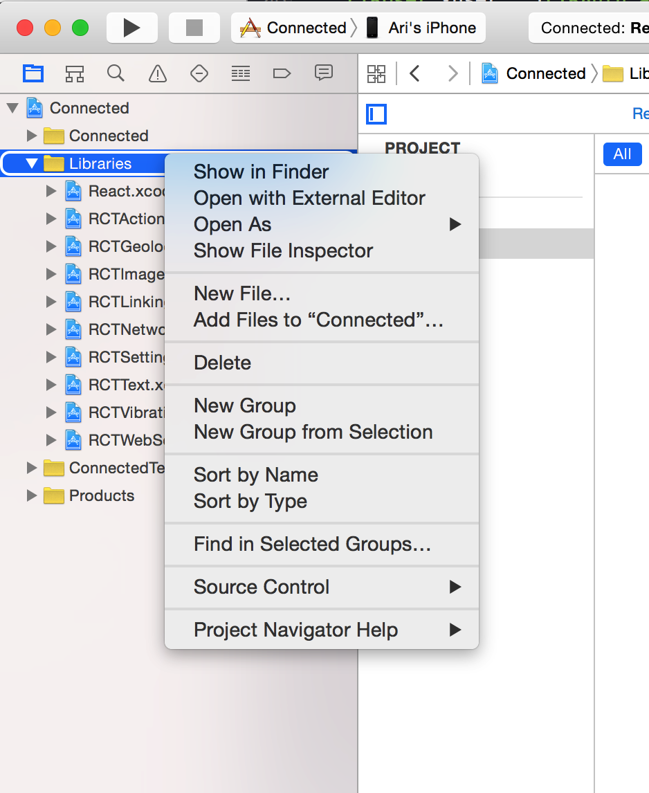 Remember to use the ios/[YOUR APP NAME].xcworkspace instead of the ios/[YOUR APP NAME].xcproj file from now on.