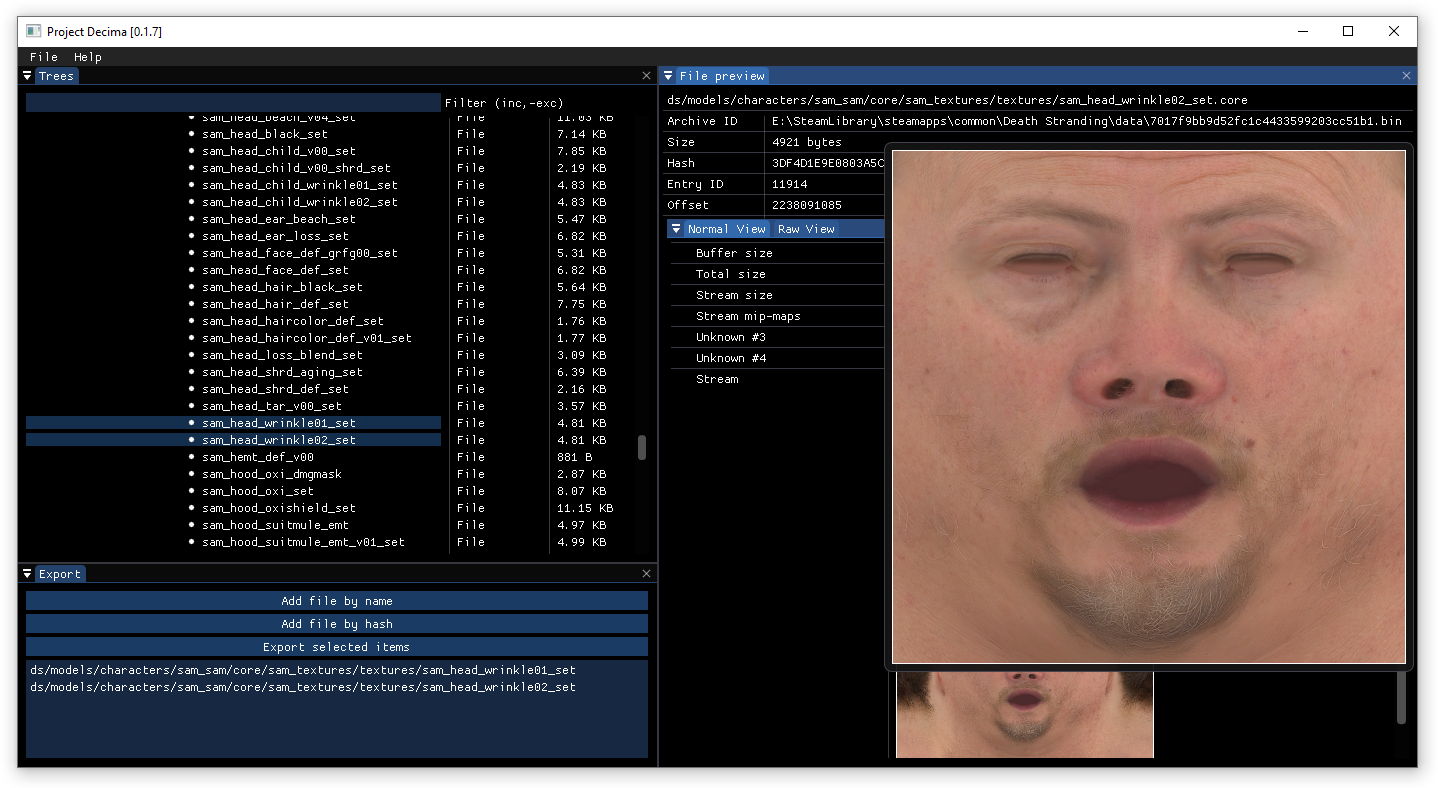 This project is aimed to provide graphical user interface for previewing, exporting and modifying game resources in games based on Decima Engine in research purposes.