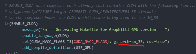 The nvcc compile flags for Graphitti are fixed to CC 3.5 - which are specifically for Kepler-generation cards (around 6 years old). To enable future work in implementing newer software features and hardware capabilities, we should remove this specific flag and opt to make it flexible for newer cards (such as the Volta card on the otachi server).