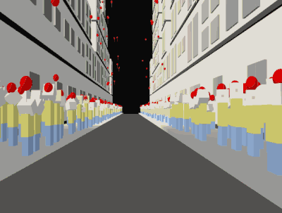 Distance Field Attractors: Colorful particles move towards the surface of an invisible mesh.