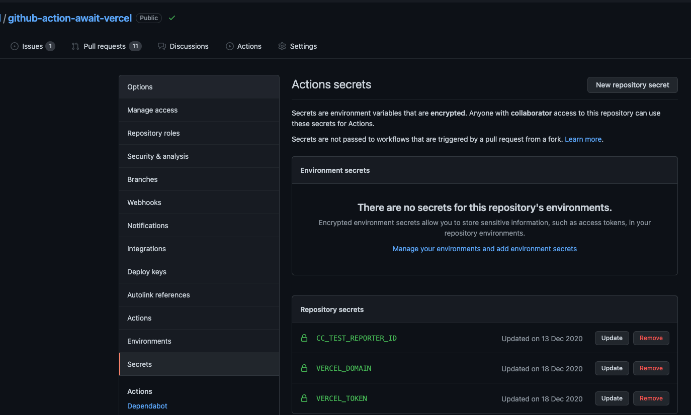 VERCEL_TOKENsecret and I also see this error on UnlyEd/github-action-await-vercel with a dependabot's pull requestsBeta Was this translation helpful? Give feedback.