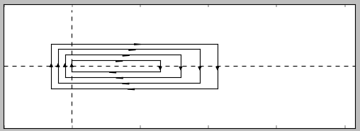 There is an exact symetry with respect to the line y = 0. Each axial current is plotted as a horizontal segment with vertical coordinate y = +-n. Lines are joined at points where I changes. Arrows are put in the middle of segments.