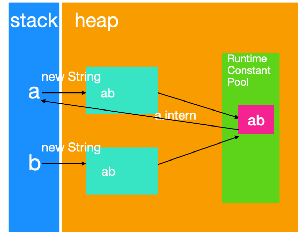 也就没问题了吧,它们都返回的是字符串常量池中的 ab,地址相同,所以输出 true