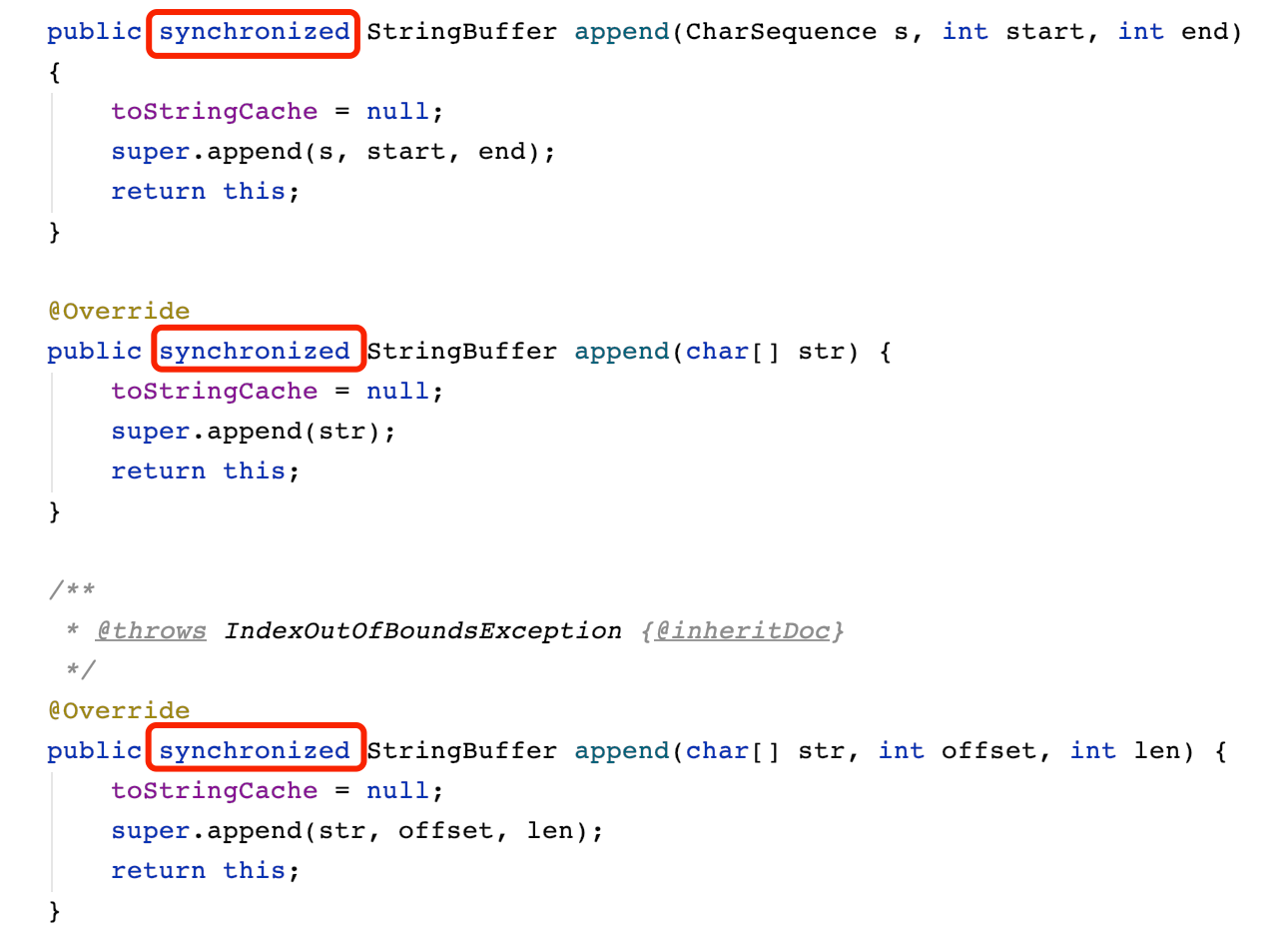 StringBuffer 在字符串拼接上面直接使用 synchronized