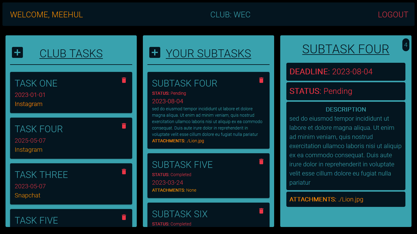- There has been a dashboard created for the viewing, creating, and deleting of the tasks and subtasks.