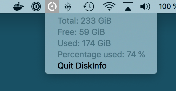 DiskInfo Simple tool to let you see disk space usage of your hard drive. Get it from the Apple mac store: https://apps.apple.com/us/app/disk-info/id1052757257?ls=1