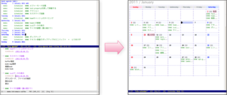 - 2011/01/07 ver 0.2.1 : Supporting org-agenda schedules.