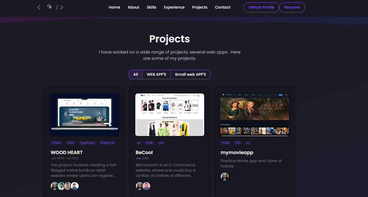 - Projects: A collection of my notable projects with descriptions, screenshots, and links.