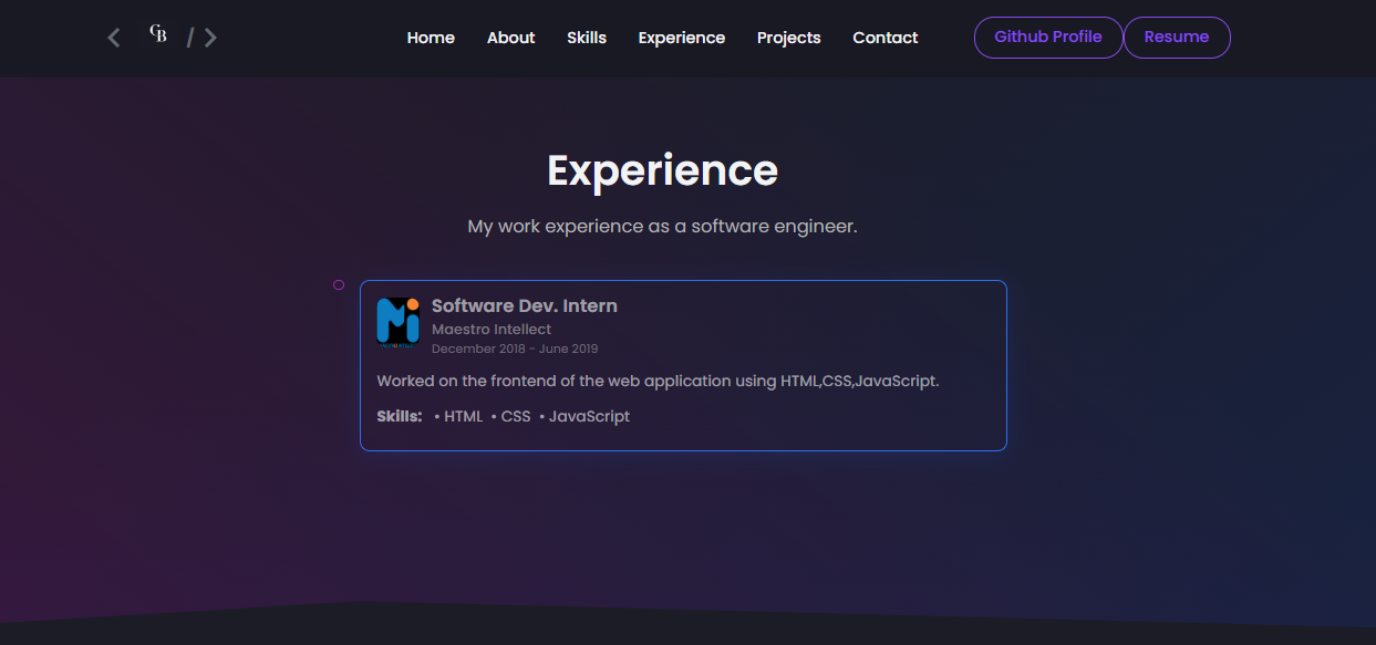 Welcome to my portfolio! This project showcases my skills, projects, and experiences as a web developer.