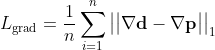 The gradient of depth maps is obtained by a Sobel filter; the gradient loss is the L1 norm of the difference.