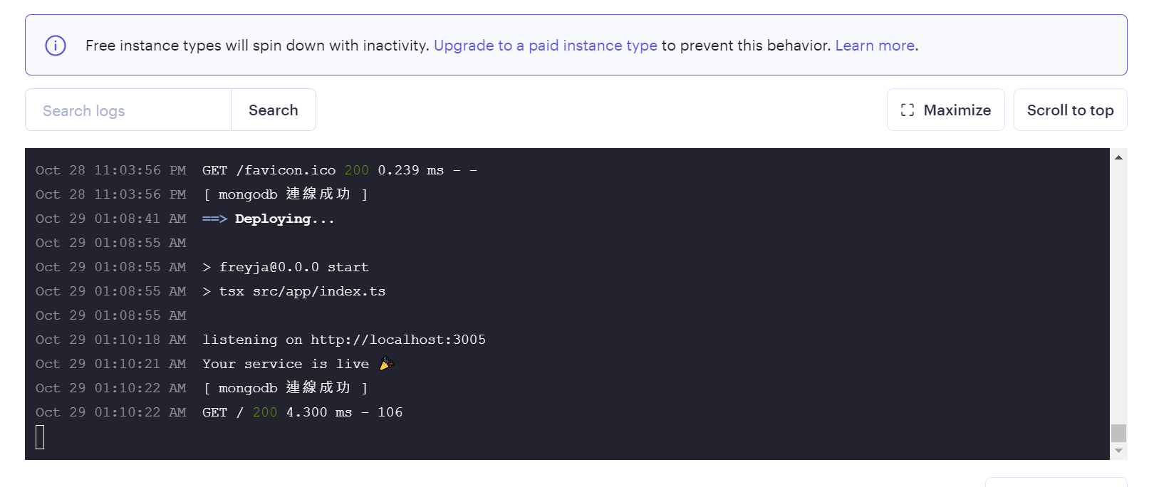 按下「Create Web Service」,可看到專案正在被部署到 Render