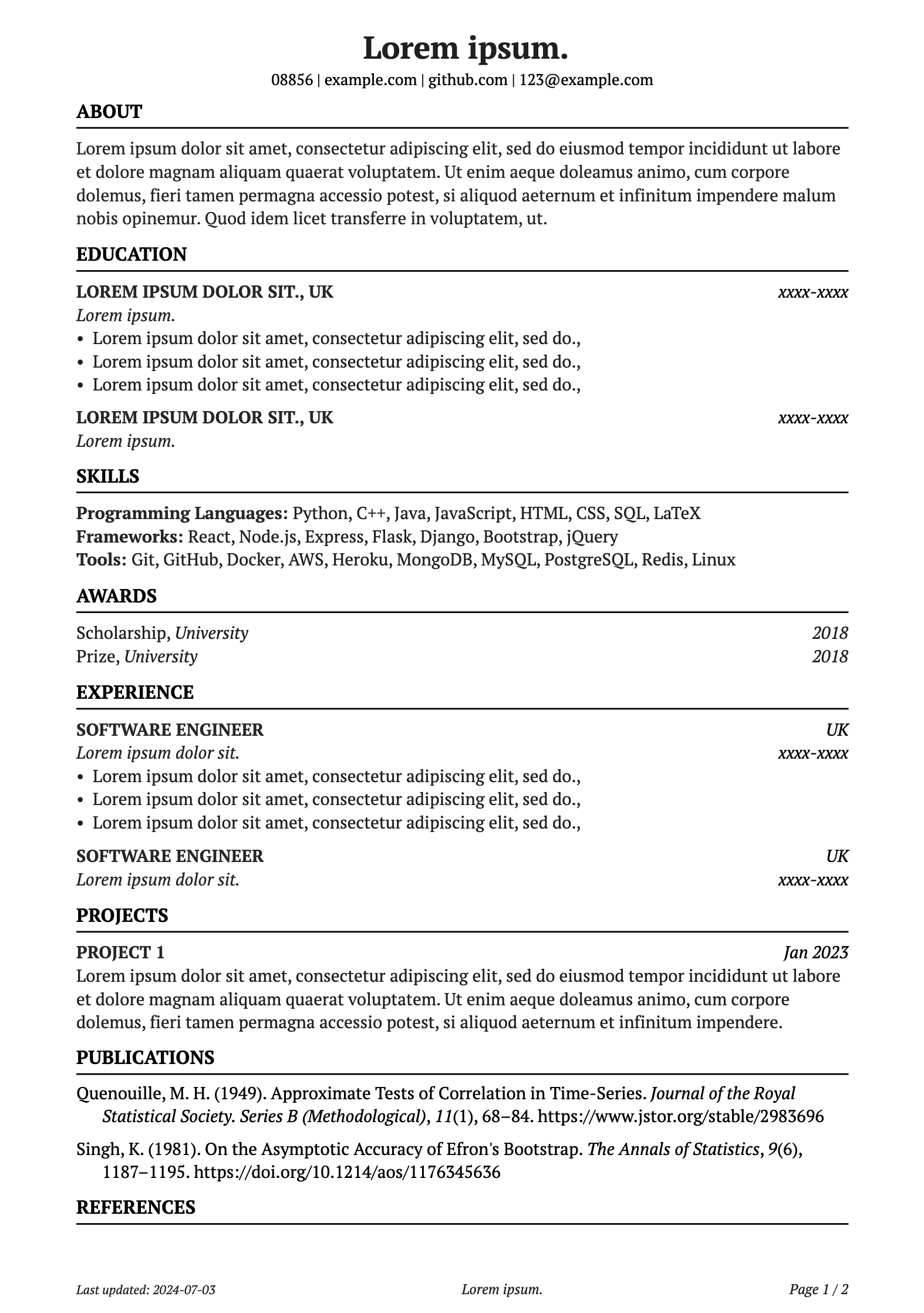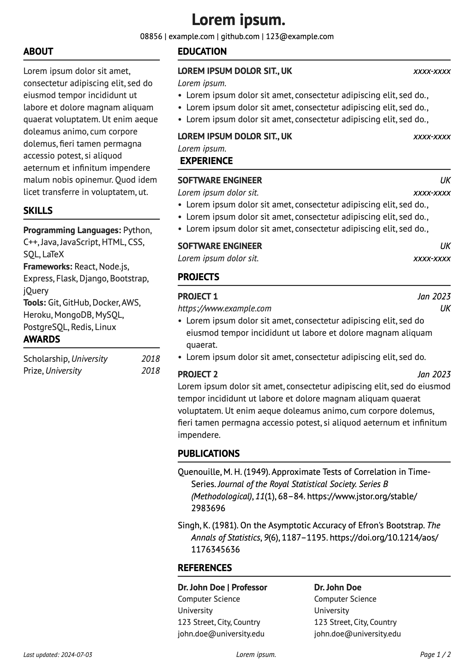 This Typst CV template is inspired by the Latex template Deedy-Resume. You can use it for both industry and academia.