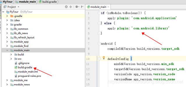 先打开FlyTour工程的根目录下找到gradle.properties 文件,然后将 isModule 改为你需要的开发模式(true/false), 然后点击 "Sync Project" 按钮同步项目
