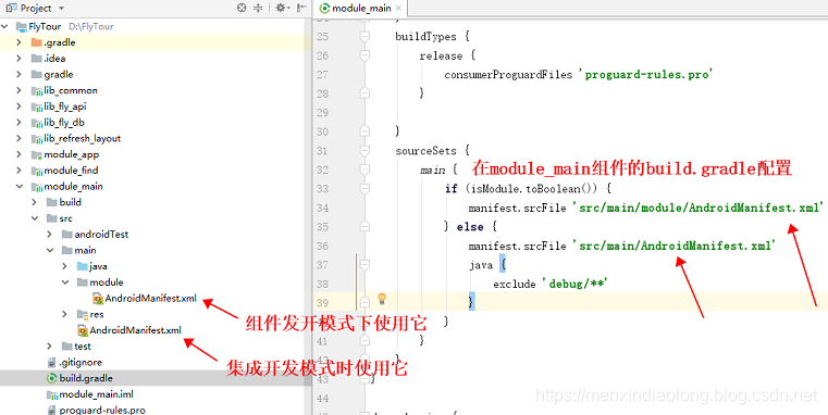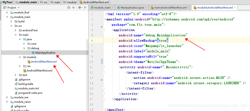 我们可以为组件开发模式下的业务组件再创建一个 AndroidManifest.xml,然后根据isModule指定AndroidManifest.xml的文件路径,让业务组件在集成模式和组件模式下使用不同的AndroidManifest.xml,这样表单冲突的问题就可以规避了