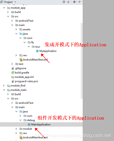 在每个组件的debug目录下创建一个Application并在module下的AndroidManifest.xml进行配置