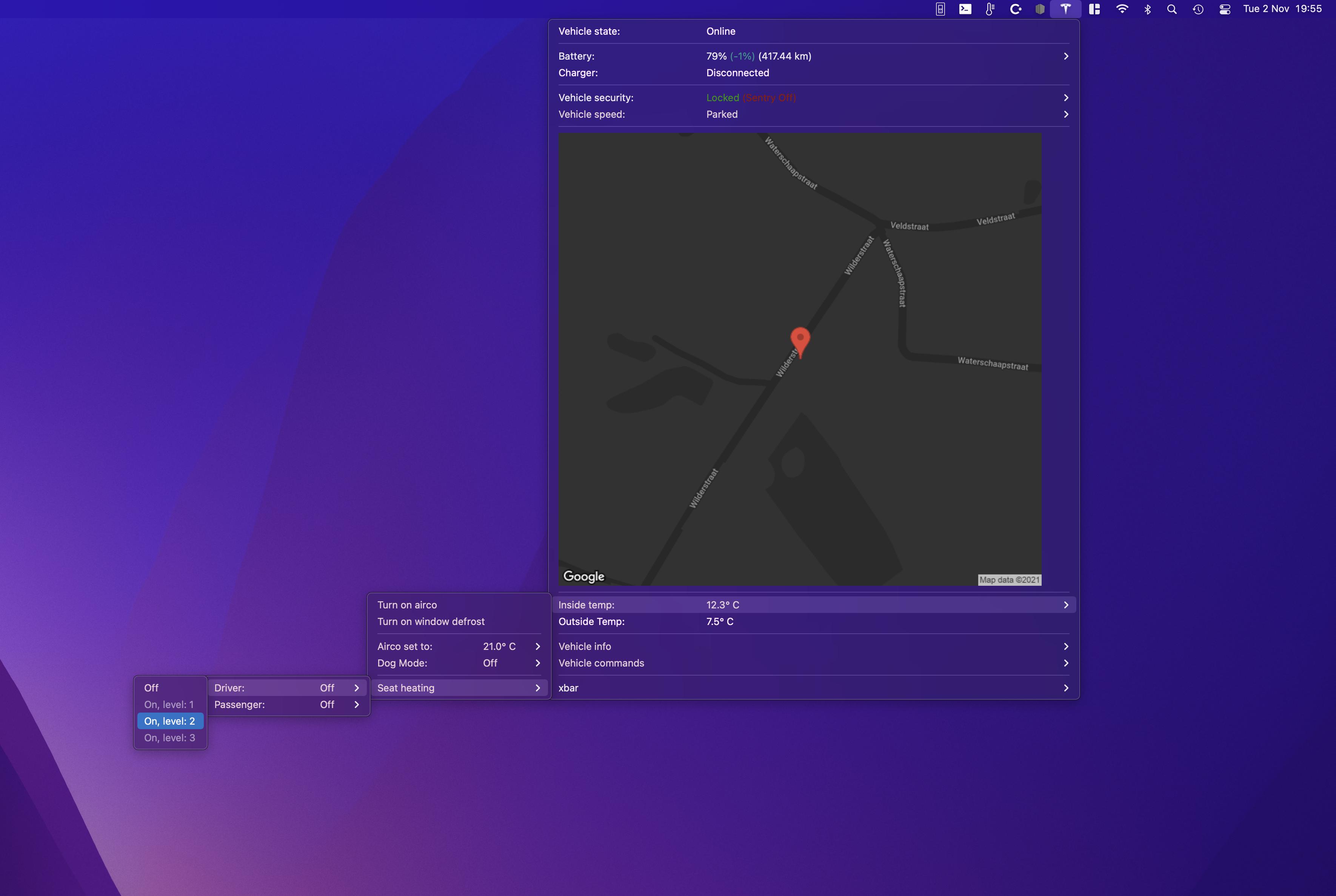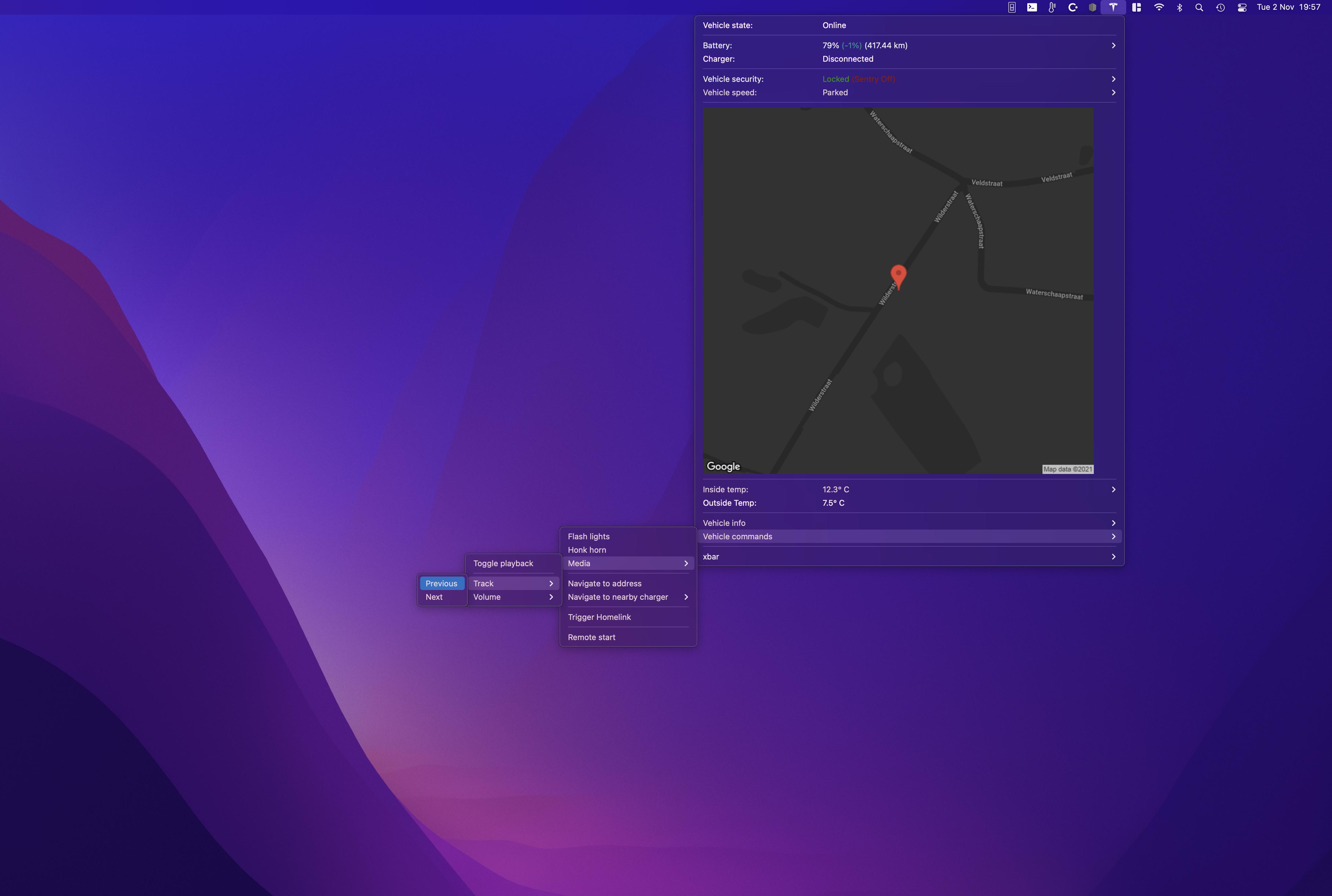 Displays information regarding your Tesla vehicle in the MacOS menubar. Allows you to remotely control your Tesla vehicle as well.