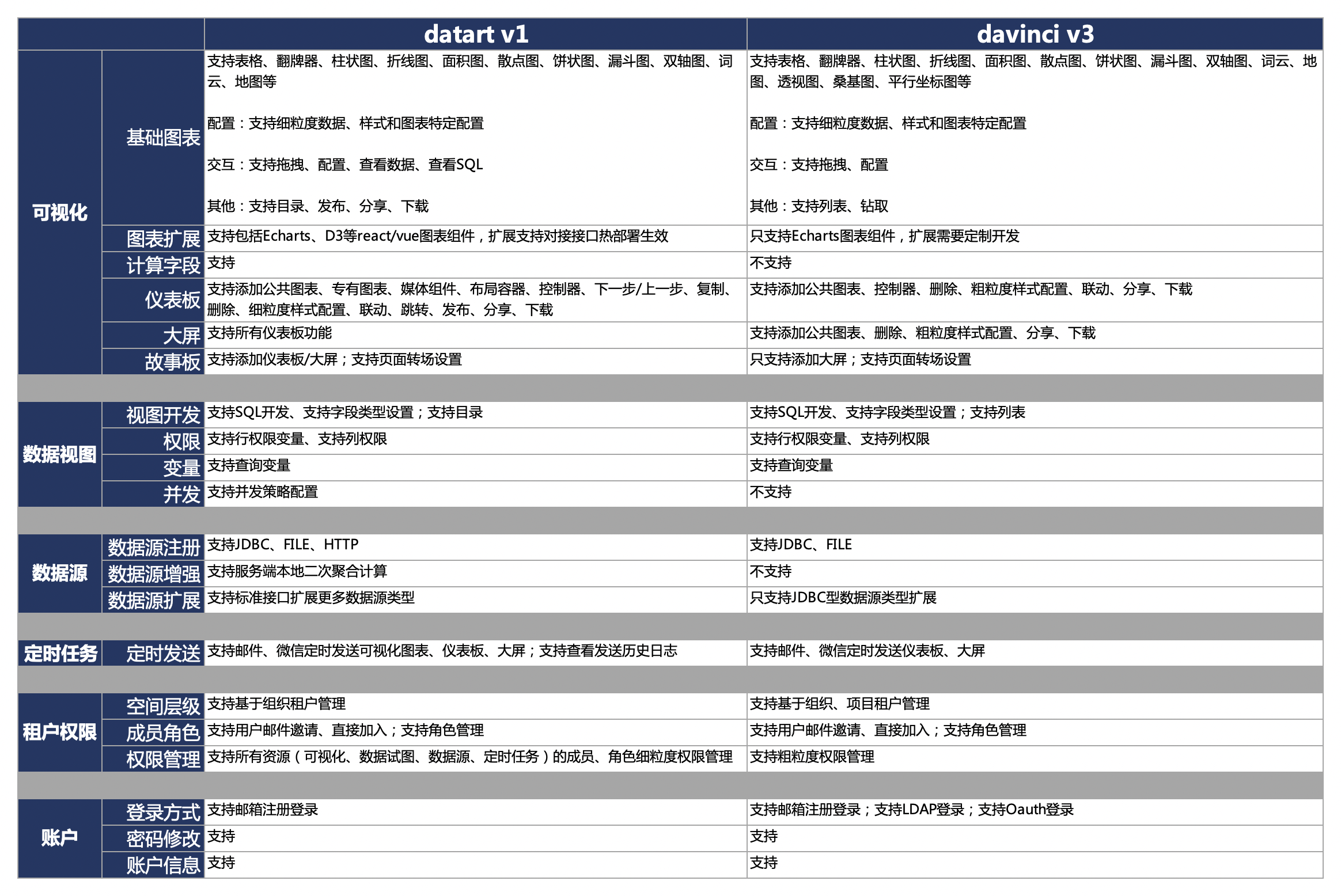 BI产品作为标准化产品成熟度已经很高,但大多数BI产品为封闭系统,即用户只能使用BI产品内置提供的数据源、数据图表、可视化元素等。我们认为数据可视化平台可以在其系统边界范围内,在多个层面提供开放可扩展能力,新的扩展支持可以通过即插即用方式安装、更新或卸载。因此 datart 试图建立起一套标准化的 数据可视化开放平台