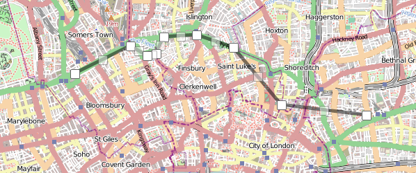 leaflet-plotter allows you to create routes using a leaflet powered map. You can click on the mid-points to create a new, draggable point.