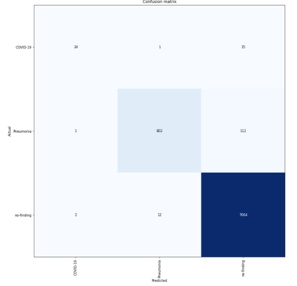 This repository contains a very basic code to perform deep learning on Chest X-Ray images obtained from various sources and classifying them into COVID-19, Pneumonia and Normal using Pytorch and fastai library. No cleaning and optimization has been done so far, as this is a learning exercise I have done after the first lesson of the course Practical Deep Learning for Coders v3. I will work on this further to improve as I learn from the following lessons of the course.