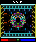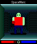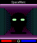 SpaceMerc is a sci-fi FPS game (first-person shooter) in a simplistic 3D environment written in C for the Pebble smartwatch by David C. Drake. The player is a mercenary defending humanity from hostile aliens in order to earn money which can then be spent on upgrades to weaponry, armor, etc.