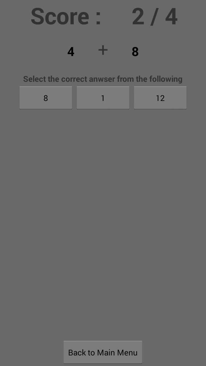 An android quiz application based on simple mathematical operations has been developed to help school kids learn Mathematics in a fun �way�. The application generates random numbers with a mathematical operation for the �users� to calculate and choose an answer from the available options. Based on the correct number of answers the score is updated continuously.