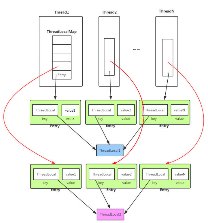 最终的变量放在了线程的ThreadLocalMap中,而不是ThreadLocal中,ThreadLocal只是对其进行封装,向其传递变量值